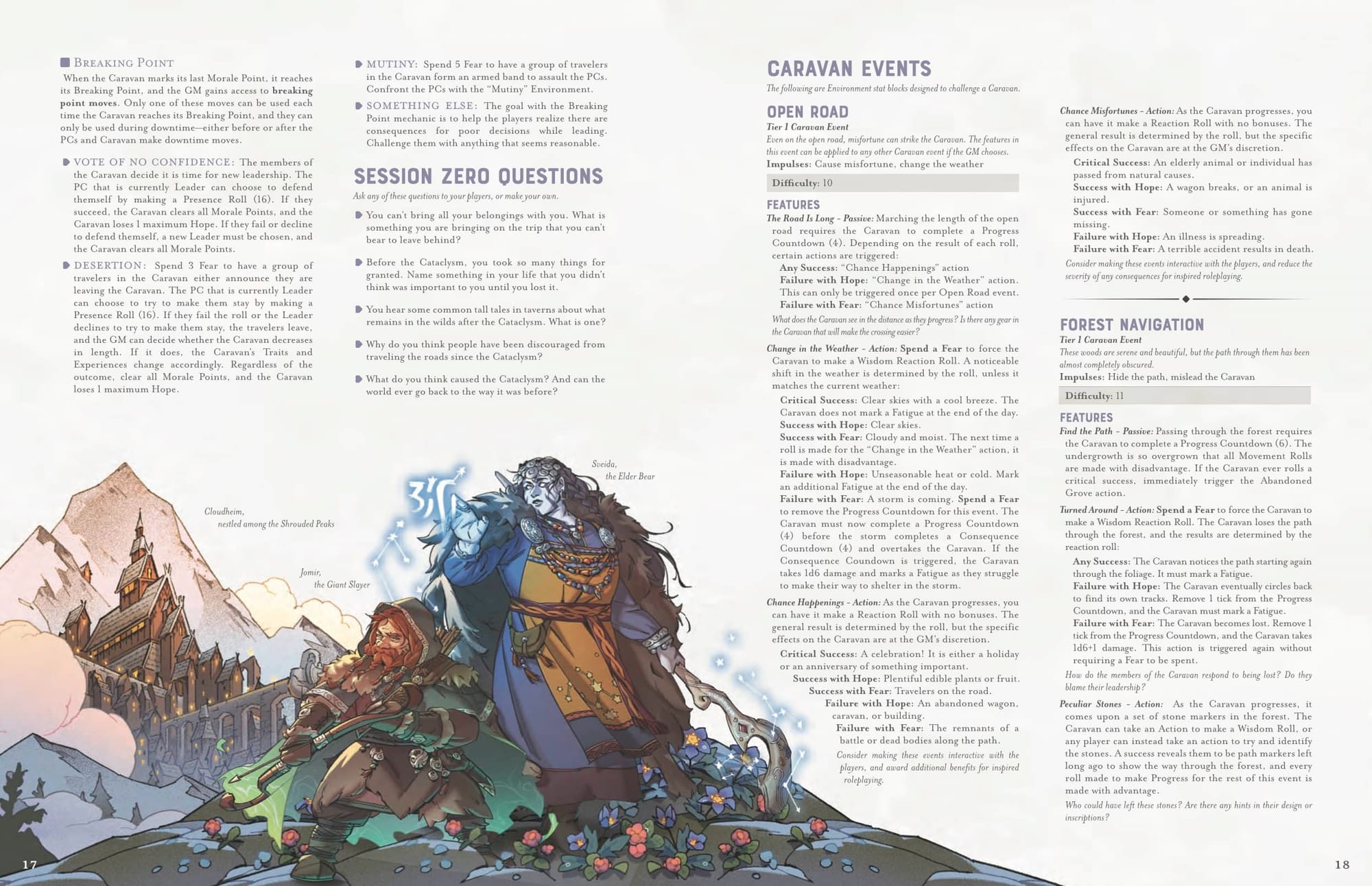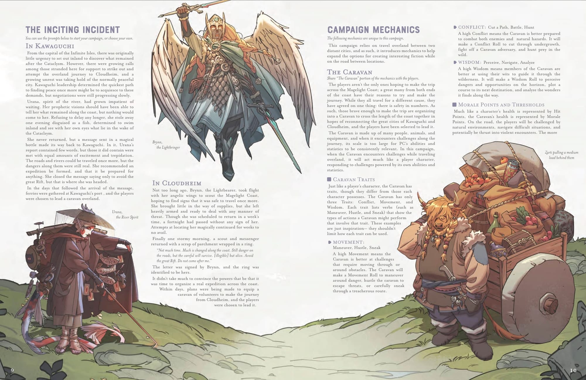 While the premise of Remnants is simple—a disaster fractured an archipelago and adventurers seek to connect two communities on either ends—it includes a novel character: the Caravan. Caravans help PCs travel overland and come in various sizes with different leaders. They have personalities, experiences, morale and fatigue…all the necessary attributes to turn them into hulky-yet-quirky NPCs that protect and connect the party along the journey.
