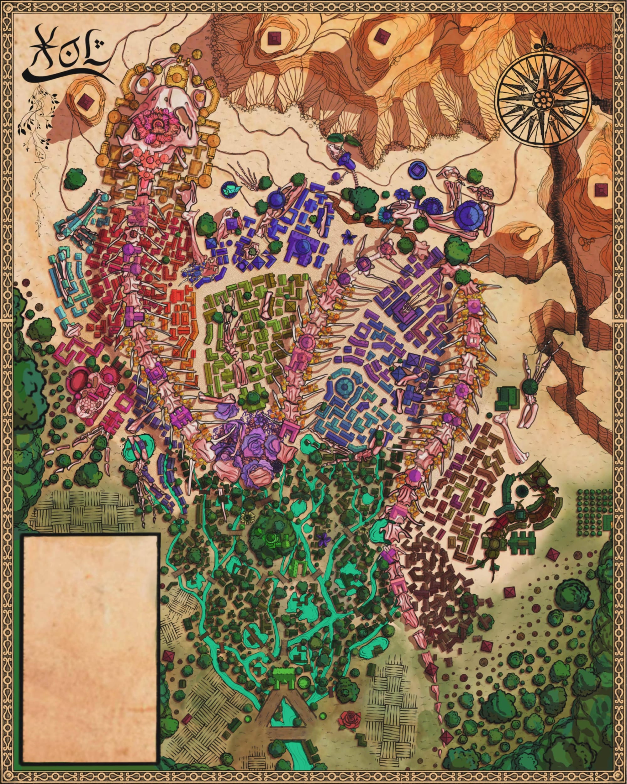 The playtest module is beautifully illustrated by Rebecca Hu and includes an equally lovely map and VTT tokens drawn by S.E. Davidson.