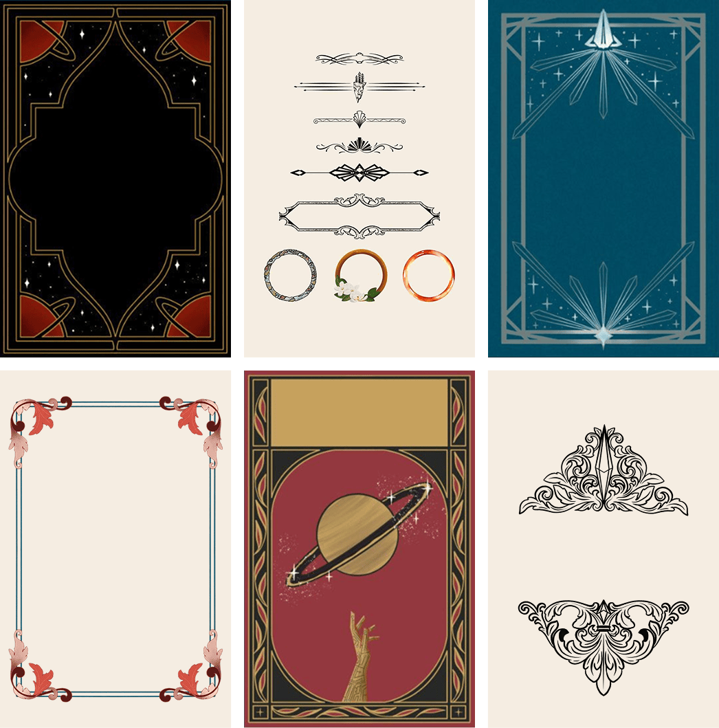 Ramona—aka Alderdoodle—is a UK artist specializing in lettering and ornate illustrations for games and books. Her fanciful flourishes are typically commissioned, but she also offers a dozen or so freebies via her ko-fi page. Borders, dividers, brackets, corners—all confer a tinge of history and a hint of luxury to your work.