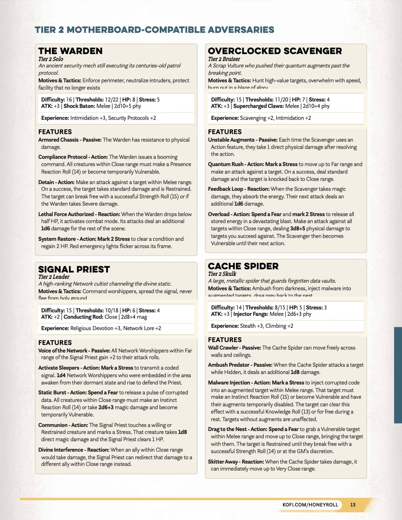 Creator @HideFromPewPew (delightful UN) has 12 free Motherboard Adversaries on offer, and another 19 as part of the full set on HoD. Go forth, soldiers and solders.