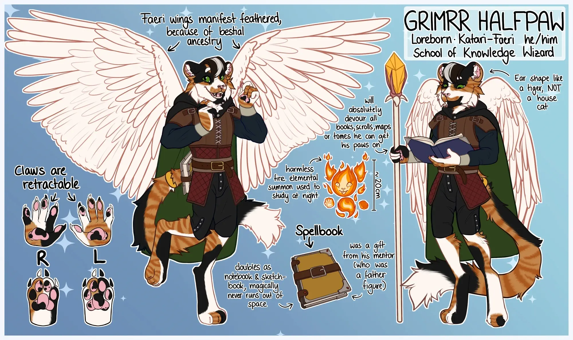 V1: "She's an Elven Mage. She's wearing robes and carrying a staff."