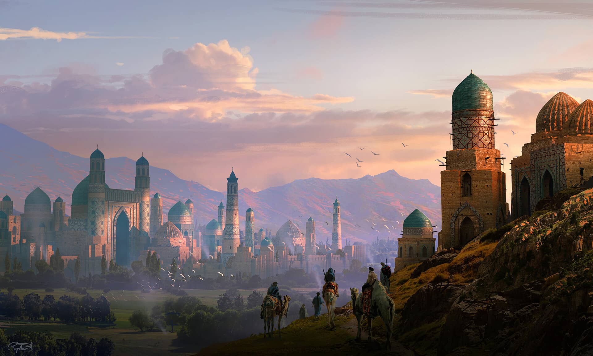 The exaggerated proportions of the buildings and vessels in Montreal-based artist Raphael Lacoste’s portfolio create scenes that feel both familiar and otherworldly. The epic scale and commanding architecture make us—the tiny inhabitants that dot the surfaces—irrelevant to the majesty of the creator, be they gods, engineers, or, in Lacoste’s case, art directors.